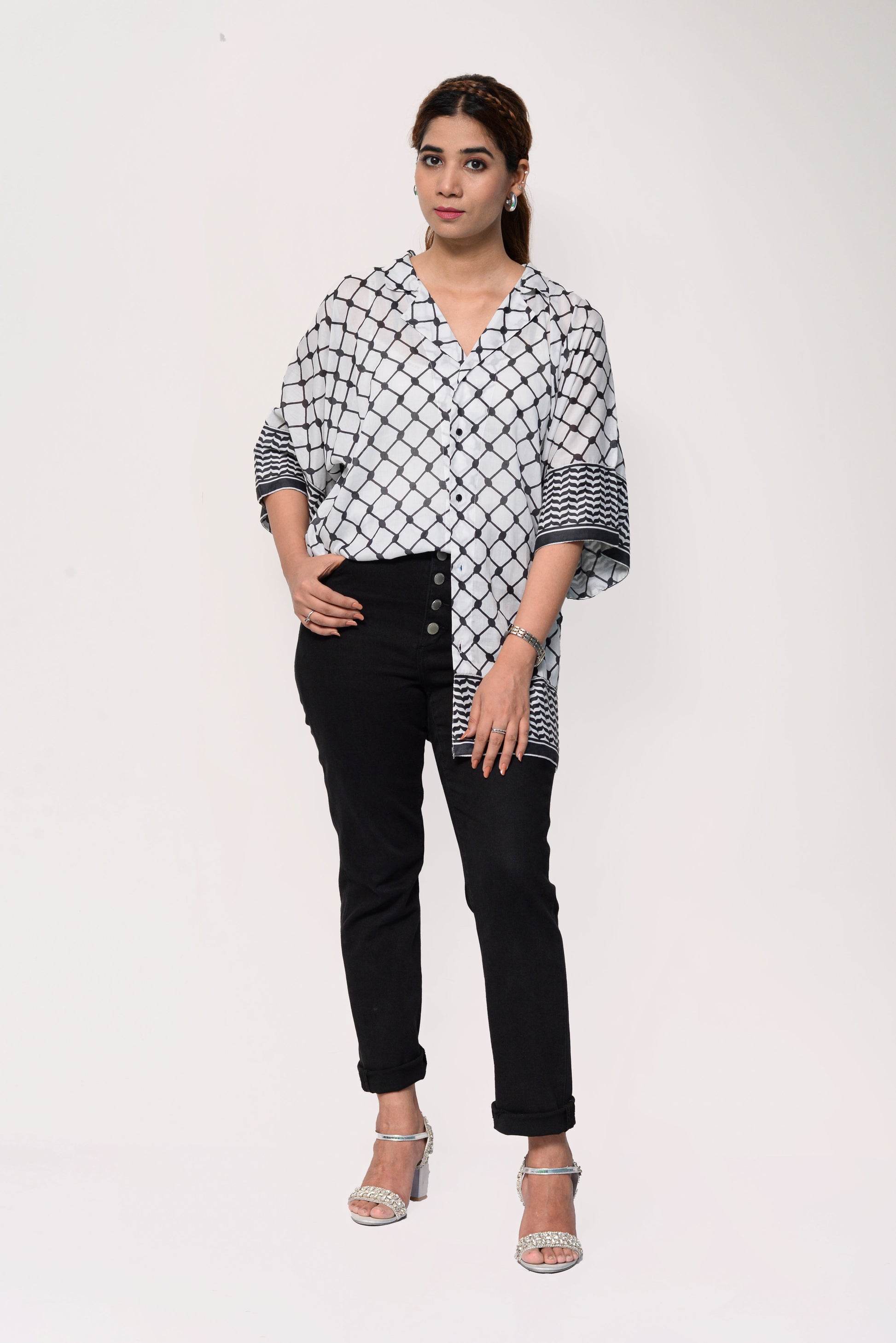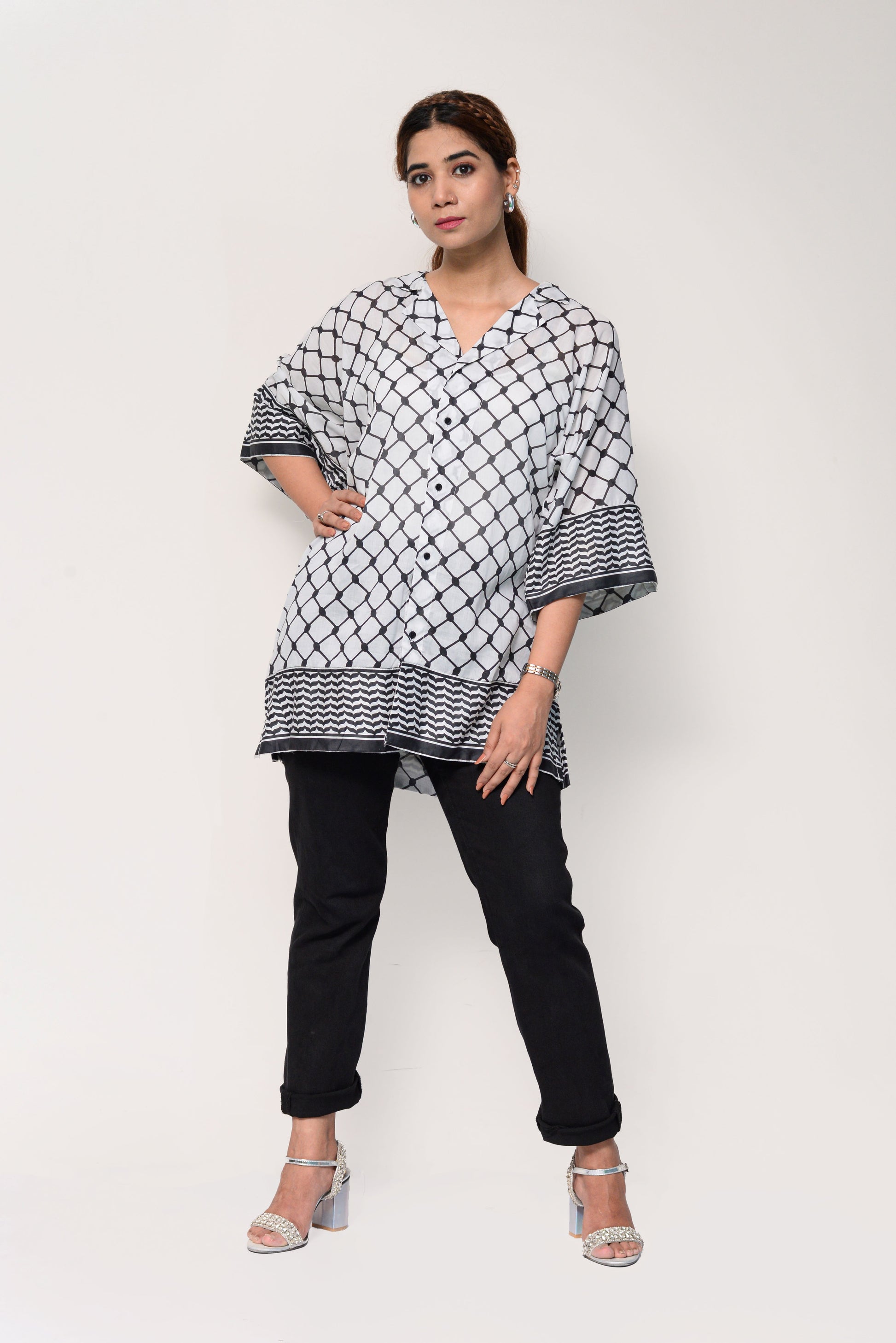 A bold tribute to Gaza's resilience. This unisex baggy shirt features the classic black-and-white Keffiyeh design, made with light and breathable lawn fabric. Its loose, relaxed fit offers all-day comfort — perfect for everyday wear